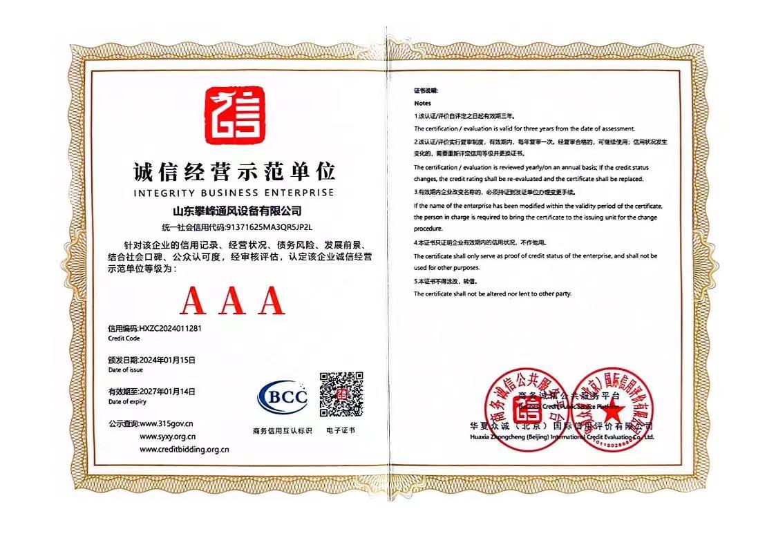 • AAA級企業(yè)等級證書